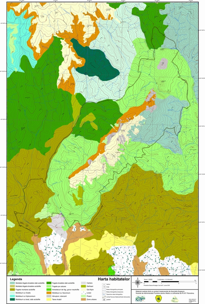 - Tufărișuri cu Pinus mugo și Rhododendron myrtifolium (habitat prioritar)