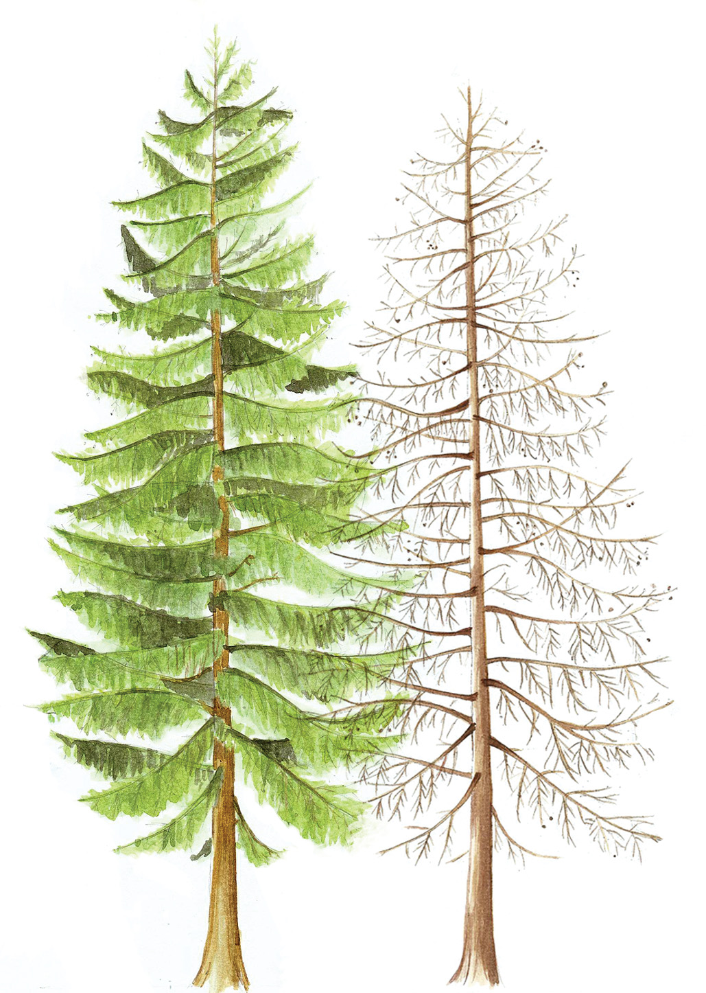 în care sunt dispuse acele se îngalbenesc, urmând să cadă.