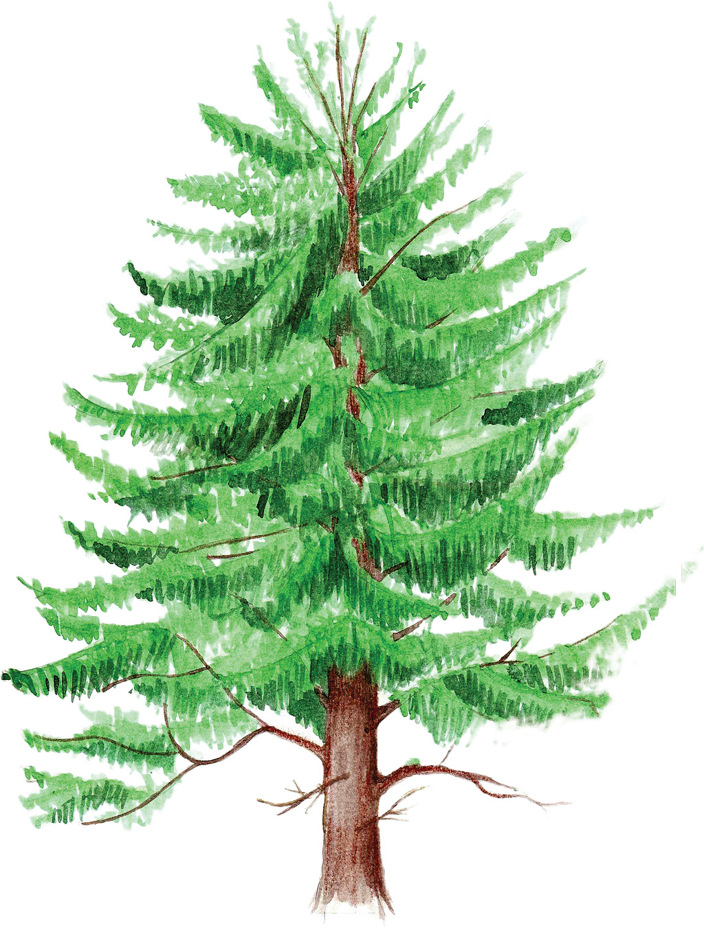 Îl deosebim de brad prin culoarea trunchiului mai roscatã si prin dispunerea acelor de jur împrejurul ramurii.